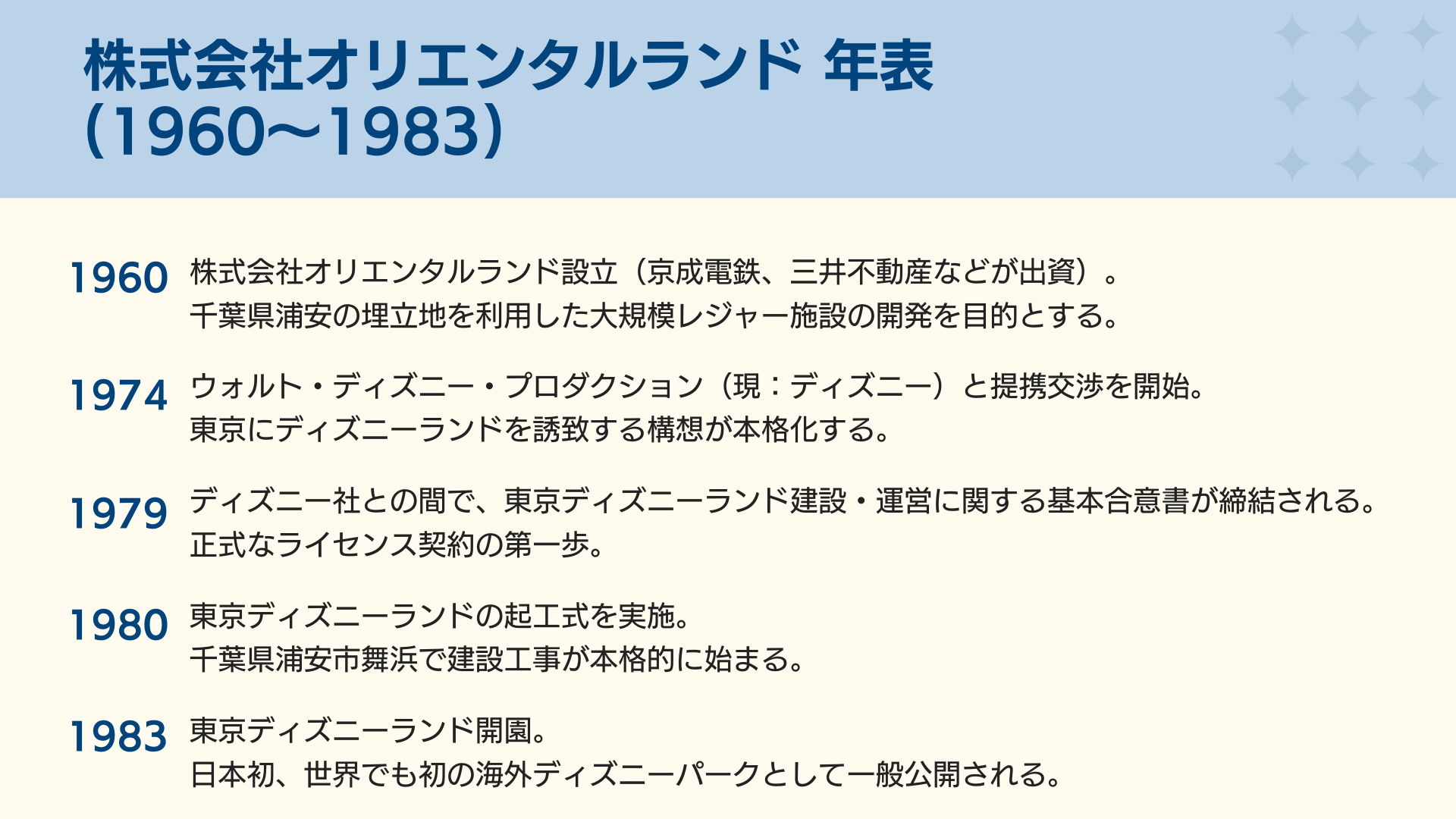 補足として、東京ディズニーランド開業までの主な流れを簡単に整理すると、